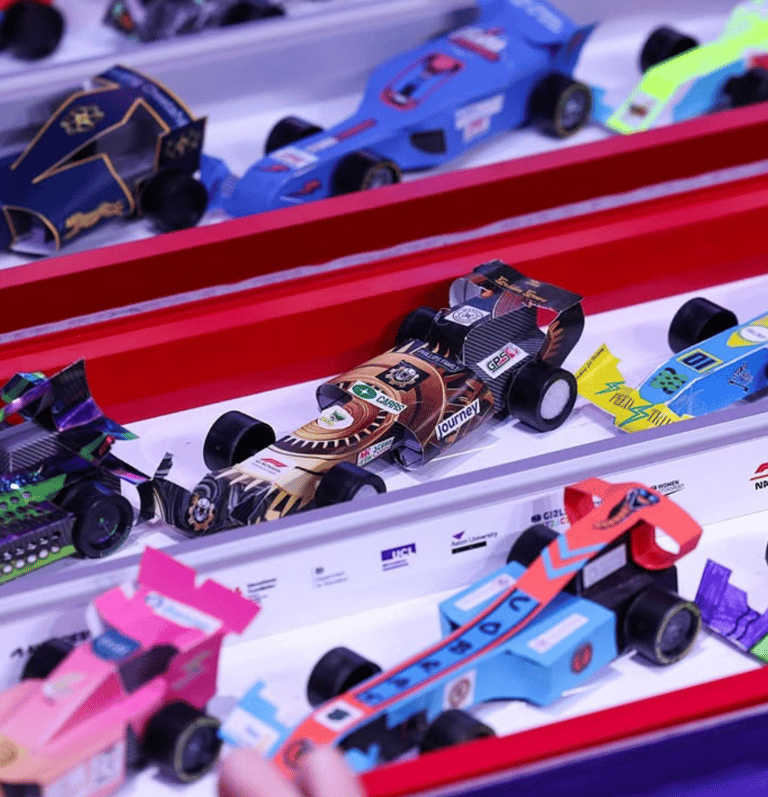 Stem Racing is a engineering contest for secondary students, where teams design and race miniature F1 cars at speeds up to 75 mph. Our car last season went up to an amazing 70kmph! Judging extends beyond speed, considering presentations, displays, and portfolios. It's a STEM challenge that applies classroom skills to real-life situations.
